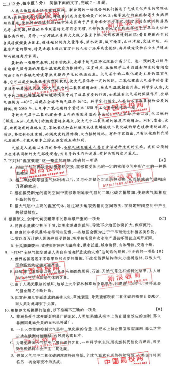 水電知識(shí)網(wǎng)»資訊»水利要聞»2003年高考:全球氣候變暖12分題進(jìn)語文卷 三峽移民入文科綜合卷