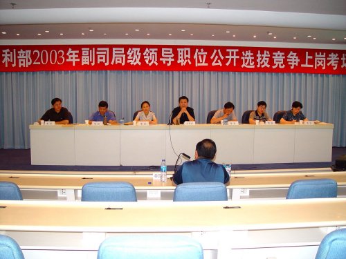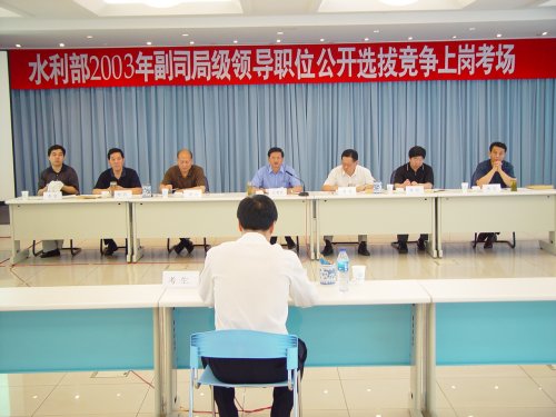 據(jù)悉,6月23日筆試考已順利結束。根據(jù)《水利部2003年副司局級領導職位公開選拔競爭上崗工作實施方案》的規(guī)定,本次所有參加公開選拔競爭上崗筆試的人員,直接參加面試。面試共分5個考場: