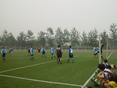 比賽中,由于我社控制了中場(chǎng),在大部分的時(shí)間里控制著場(chǎng)上的局面。剛開(kāi)始不久,我隊(duì)就通過(guò)嫻熟的配合,為李亮創(chuàng)造了一個(gè)極佳的單刀球機(jī)會(huì),只可惜身體狀況不佳的李亮將球射失。隨后,部機(jī)關(guān)足球隊(duì)在適應(yīng)了我社的打法后,逐漸展開(kāi)了攻勢(shì),雙方形成了對(duì)攻的局面,比賽進(jìn)入白熱化狀態(tài)。部機(jī)關(guān)足球隊(duì)連續(xù)發(fā)動(dòng)了幾次極有威脅的進(jìn)攻,都一一被我社后防化解。在比賽進(jìn)行到上半場(chǎng)中間時(shí)段時(shí),部機(jī)關(guān)足球隊(duì)在一次反擊中,利用我社后衛(wèi)的一個(gè)失誤,在禁區(qū)外一腳極其刁鉆的遠(yuǎn)射,將比分變?yōu)?:0。在失球后,我社隊(duì)員并未泄氣,反而激發(fā)了我社隊(duì)員的斗志,不久就通過(guò)一連串漂亮的配合,將球攻入前場(chǎng),由鄧群利用嫻熟的個(gè)人技術(shù),在禁區(qū)外巧射得分,將比分扳平。在此后雙方互有攻守,但比分并未改變,一直保持到上半場(chǎng)結(jié)束。
