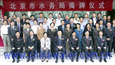 國務(wù)院南水北調(diào)辦主任張基堯、建設(shè)部副部長傅雯娟、國家環(huán)??偩诸I(lǐng)導(dǎo),北京市委副書記強衛(wèi)、市人大常委會副主任趙鳳山、市政協(xié)副主席王長連等出席揭牌儀式,與市水務(wù)局全體公務(wù)員一起見證了水務(wù)局的成立。
