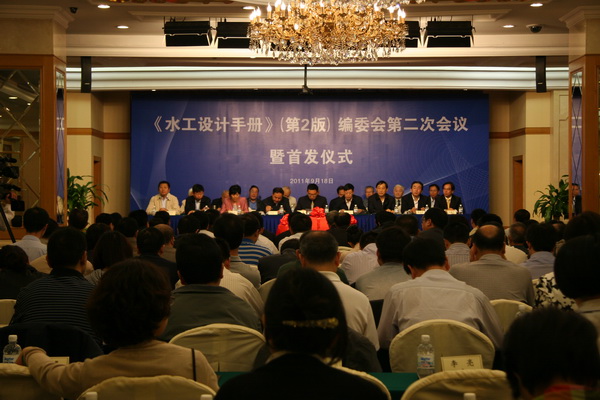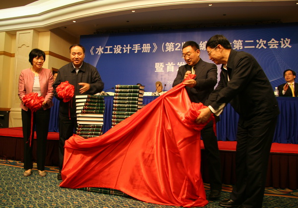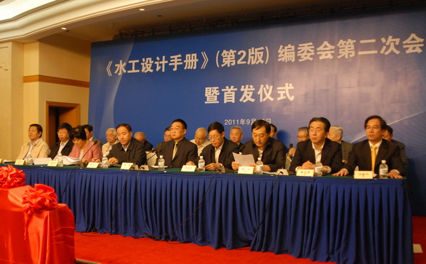 2011年9月18日,《水工設(shè)計手冊》(第2版)編委會在京舉行編委會第2次全體會議暨首發(fā)儀式。《水工設(shè)計手冊》(第2版)編委會主任、水利部部長陳雷出席首發(fā)式并作重要講話(全文另發(fā))。會議由《水工設(shè)計手冊》(第2版)主編、水利部副部長劉寧主持。胡四一副部長宣讀了《水工設(shè)計手冊》(第2版)技術(shù)委員會主任、兩院院士潘家錚的書面講話(全文另發(fā));新聞出版總署陳亞明副司長代表鄔書林副署長熱情致辭;索麗生主編作《水工設(shè)計手冊》(第2版)修編工作報告。陳雷、索麗生、胡四一、陳亞明一道為此書首發(fā)式揭彩。我社領(lǐng)導(dǎo)湯鑫華、胡昌支、陳東明、周金輝、李中鋒參加首發(fā)式。我社原總編輯王國儀獲贈樣書。