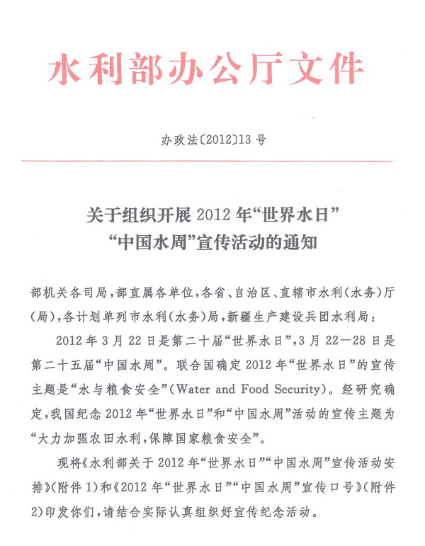 水電知識(shí)網(wǎng)»資訊»水利要聞»關(guān)于組織開展2012年“世界水日”“中國水周”宣傳活動(dòng)的通知