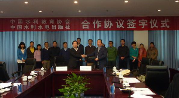 為深入貫徹中央1號文件和中央水利工作會議精神,進一步做好水利部委托的大中專院校水利類專業教材建設工作,中國水利教育協會與中國水利水電出版社于2012年3月1日上午進行座談并簽署合作框架協議。教育協會會長周保志、副會長兼秘書長彭建明,出版社社長湯鑫華、副社長胡昌支、陳東明、周金輝、李中鋒等雙方領導出席簽字儀式,部人事司人才開發培訓處副處長駱莉參加座談及簽字儀式。