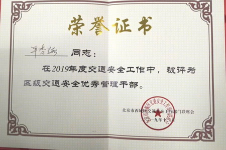 近日,北京市西城區交通安全工作部門聯席會對2019年度交通安全先進集體和個人進行表彰,我集團公司喜獲“西城區2019年度交通安全先進單位”稱號,平秀海榮獲“西城區2019年度交通安全優秀管理干部”稱號。