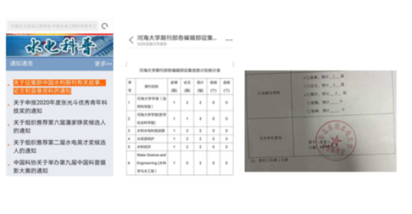 活動通知通過專題微信群首發后,中國水利學會、中國水力發電工程學會以及中國水利水電出版傳媒集團等門戶網站相繼在重要頁面和欄目及時發布該通知,使該項活動受到業界的廣泛關注和了解。黃河水利委員會、海河水利委員會、水利部信息中心、水利部發展研究中心、中國水利水電科學研究院、河海大學、華北水利水電大學、長江三峽集團傳媒有限公司、國際泥沙研究培訓中心等單位,主管領導對征集活動及時作出指示、批示,編輯部負責人認真研究可以提供的資料種類與數量。目前,河海大學期刊部各編輯部、華北水利水電大學學報編輯部已就資料征集工作作出計劃,正式提交了《征集信息表》。水文、水利水電技術、水利發展研究、中國三峽、人民黃河、海河水利等期刊編輯部對資料收集工作十分重視,多次通過電話、微信、QQ等方式,就期刊變化沿革、典型事件選取、論文報送口徑、音視頻資料報送范圍等事宜與征集工作人員進行溝通商榷,并結合各自實際積極推進資料準備工作。