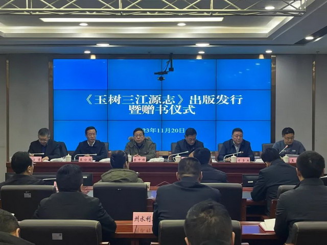 11月20日,《玉樹三江源志》出版發(fā)行暨贈(zèng)書儀式在玉樹州府舉行。中國(guó)水利水電出版社副社長(zhǎng)李中鋒、編輯林京,中國(guó)水利水電科學(xué)研究院水利史研究所高級(jí)工程師王力及青海省水利廳信息中心主任董文青出席。州人大常委會(huì)副主任昂文達(dá)哇宣布發(fā)行,副州長(zhǎng)王心闊致辭。