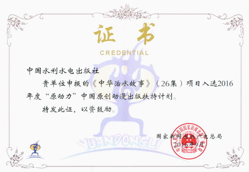 2016年5月,國家新聞出版廣電總局發布《關于組織做好2016年“原動力”中國原創動漫出版扶持計劃項目申報工作的通知》,我社積極組織項目申報。近日,我社申報的“中華治水故事”動畫片項目成功入選,并榮獲國家新聞出版廣電總局頒發的榮譽證書。