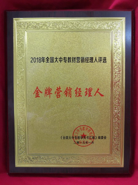 峰會期間,主辦方舉辦了“2018年全國優(yōu)秀教材經(jīng)銷商”和“2018年全國大中專教材金牌營銷經(jīng)理人”頒獎儀式。經(jīng)評委會層層甄選脫穎而出的60家教材經(jīng)銷商和40位金牌營銷經(jīng)理人到場領獎,我社營銷中心的紀紅和萬水公司的周益丹榮獲“2018年全國大中專教材金牌營銷經(jīng)理人”。