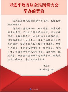 新華社北京4月23日電 首屆全民閱讀大會23日在京開幕。中共中央總書記、國家主席、中央軍委主席習近平發來賀信,表示熱烈的祝賀。 習近平在賀信中指出,閱讀是人類獲