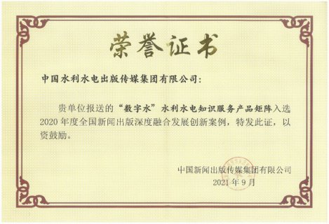 近日,我集團“數字水”水利水電知識服務產品矩陣、“中國經典水利史料”融合出版案例入選2020年度全國新聞出版深度融合發展創新案例。